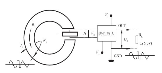 霍爾電流傳感器以霍爾元件為核心,用于隔離檢測(cè)電流的傳感器。當(dāng)電流流過(guò)一根導(dǎo)線時(shí),將在導(dǎo)線周?chē)a(chǎn)生磁場(chǎng),磁場(chǎng)的大小與流過(guò)導(dǎo)線的電流大小成正比,這一磁場(chǎng)可以通過(guò)軟磁材料來(lái)聚集,然后由霍爾元件來(lái)檢測(cè),用霍爾元件在磁芯氣隙處感應(yīng)原邊電流IP的大小和方向。霍爾元件的輸出電壓,經(jīng)過(guò)信號(hào)處理電路,使傳感器的輸出可以反映被測(cè)電流的大小。